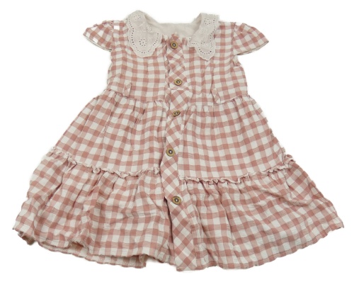 Starorůžovo-bílé kostkované propínací šaty s límečkem s madeirou