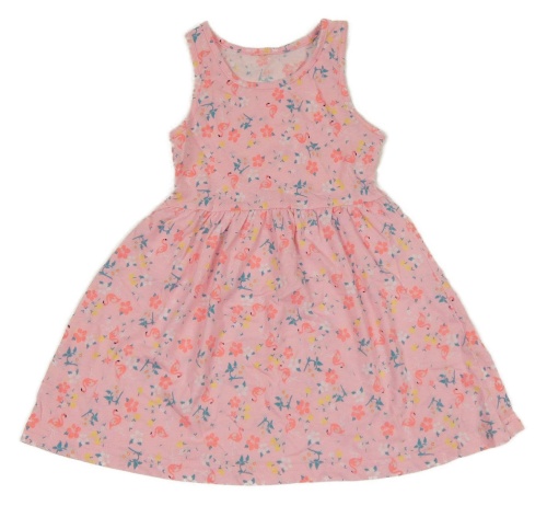 Světlerůžové kytičkované bavlněné šaty s plameňáky