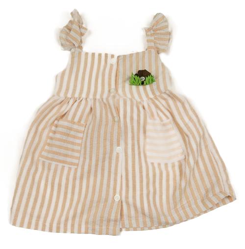 Meruňkovo-bílé pruhované propínací šaty s 3D květinou