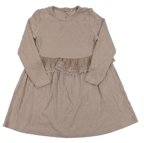 Hnědé žebrované šaty s krajkovým volánkem s květy name it.