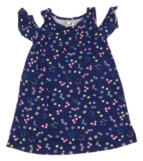 Tmavomodré bavlněné šaty s kytičkami a volnými rameny C&A