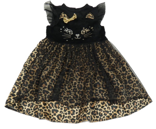 Kostým - Černo-zlaté plyšovo/tylové šaty s čumákem a sukní s leopardím vzorem F&F