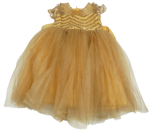 Zlato-tmavožluté tylovo/saténové slavnostní šaty s flitry
