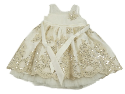 Bílo-zlaté tylové slavnostní šaty s flitry a páskem