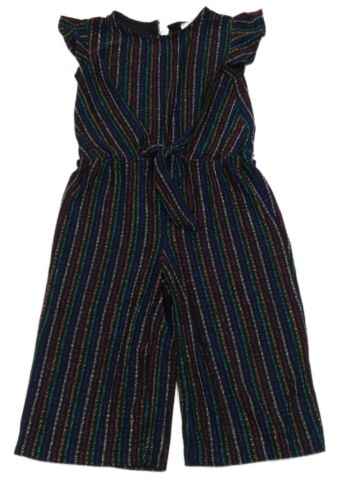 Černo-třpytivě barevně pruhovaný kalhotový slavnostní culottes overal s volánky PRIMARK