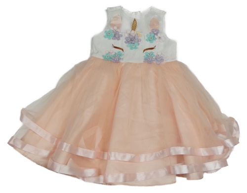 Bílo-lososové tylové slavnostní šaty s kytičikami