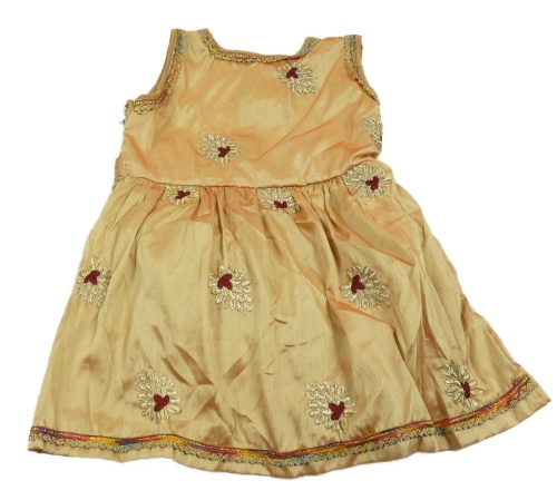 Zlaté slavnostní šaty s květy a výšikami
