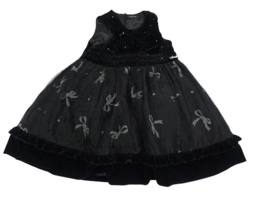 Černé sametovo/organzové slavnostní šaty s kamínky a mašlemi