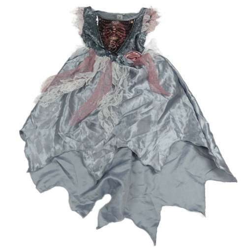 Kostým - Stříbrné sametovo/saténové šaty s lebkou a krajkou George