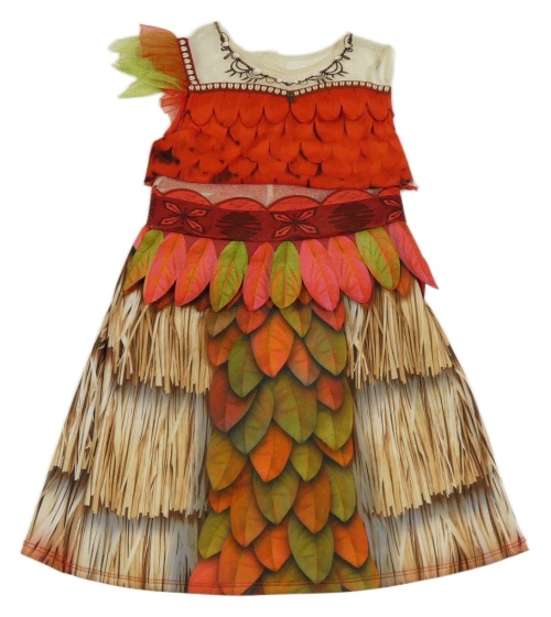 Kostým - Hnědo-červeno-zelené šaty s listy - Vaiana George