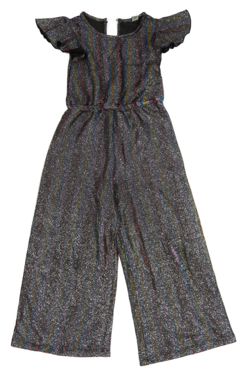 Barevno-stříbrný pruhovaný kalhotový slavnostní overal s volánky Tu