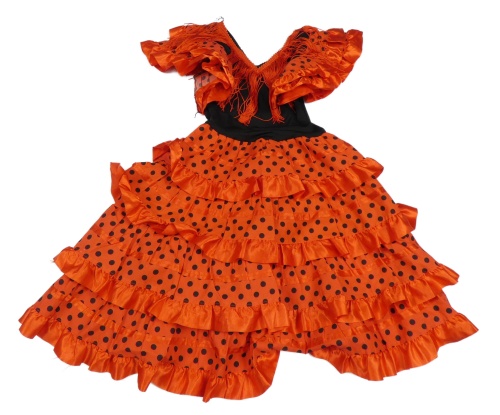 Kostým - Červeno-černé šaty s puntíky a volánky a třásněmi