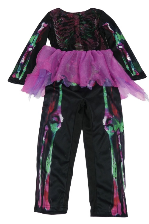 Kostým - černo-fialový overal s kostmi a růžovou tylovou sukní