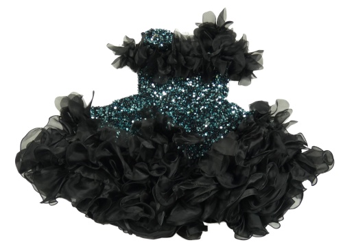 Černo-modrozelené saténovo/tylové slavnostní šaty s flitry