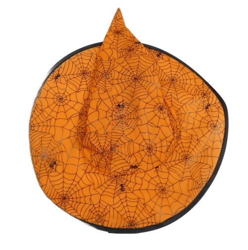 Kostým - Oranžovo-černý čarodějnický klobouk s pavučinkami a pavoučky
