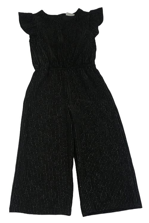 • Černo-stříbrný pruhovaný žebrovaný sametový kalhotový culottes slavnostní overal Matalan