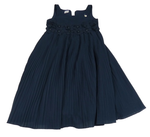 Tmavomodré plisované slavnostní šaty s 3D květy