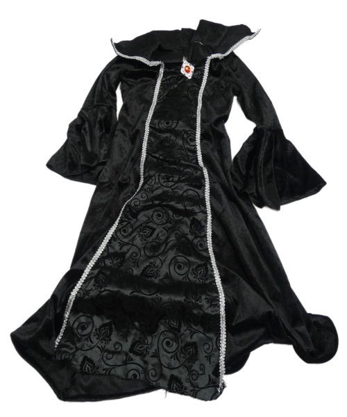 Kostým - Černé sametové šaty se vzorem a broží a límcem