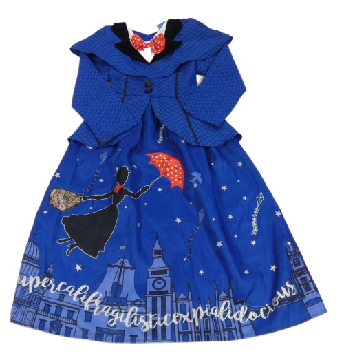 Kostým- Modré vzorované šaty s obrázkem- Marry Poppins Disney