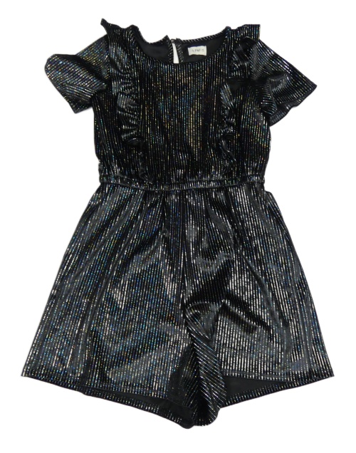 Černo-stříbrný pruhovaný sametový kraťasový slavnostní overal s volánky F&F