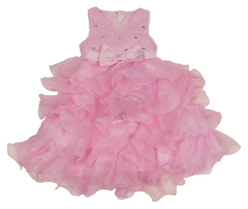Světlerůžové krajkovo/organzové vrstvené šaty s květy a korálky/kamínky a mašlí
