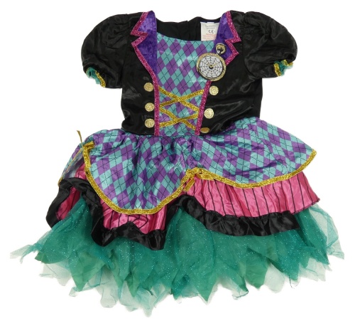 Kostým - Černo-barevné saténové šaty se vzorem a pavučinou
