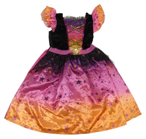 Kostým - Černo-růžovo-oranžové saténovo/sametové šaty s hvězdami F&F