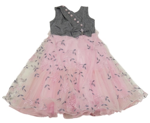 Stříbrno-růžové tylové slavnostní šaty s výšivkami květů a páskem