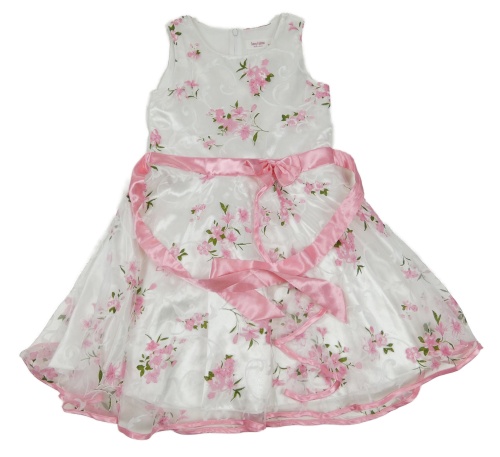 Bílo-růžové organzové slavnostní šaty s kytičkami a vzorem a mašlí Sunny Fashion