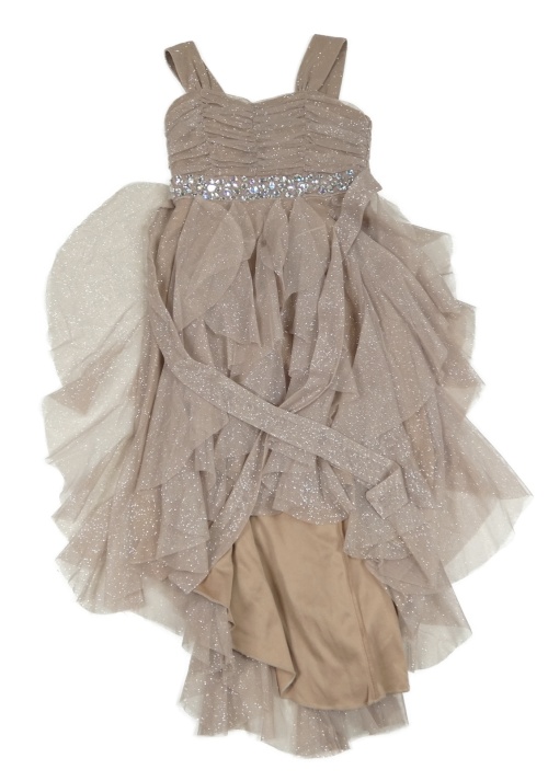 Hnědé třpytivé tylové slavnostní šaty s kamínky