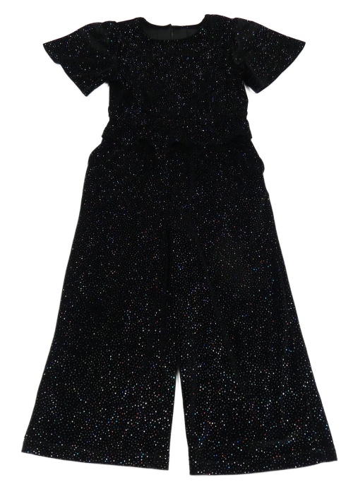 Černý třpytivý sametový slavnostní kalhotový overal F&F