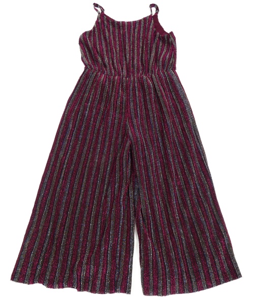 Černo-vínovo-stříbrný pruhovaný kalhotový culottes slavnostní overal M&S