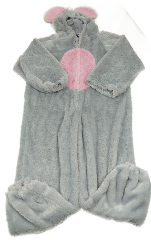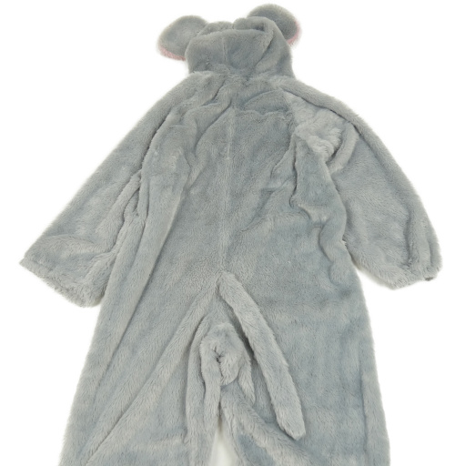 Kostým - Světlešedo-růžová chlupatá kombinéza s kapucí s oušky