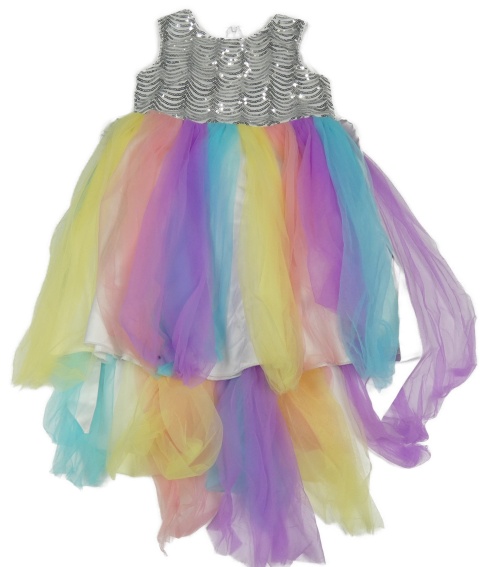 Bílo-barevné tylové slavnostní šaty s flitry s páskem