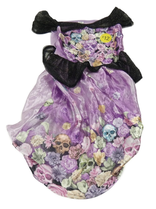 Nové - Kostým - Lila-černé saténové šaty s lebkami a tylovými prvky F&F