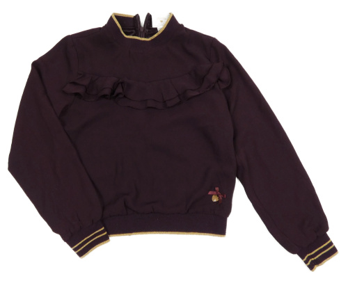 Mahagonovo-zlatá podšitá slavnostní mikina s volánky a pruhy Le Chic