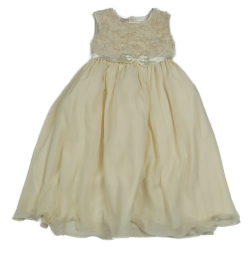 Smetanové slavnostní šaty s 3D květy a mašlí