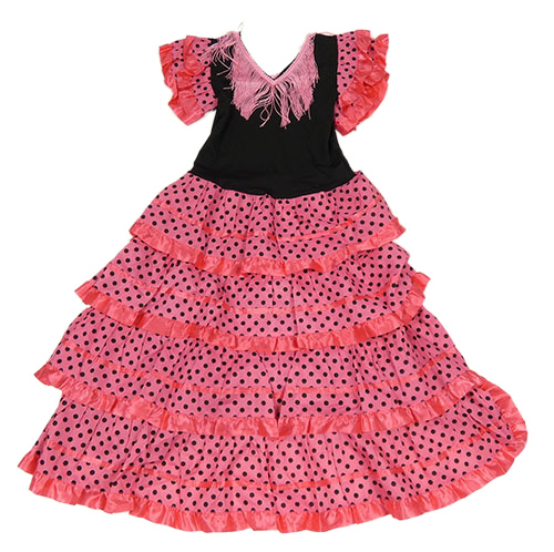 Kostým - Růžovo-černé vrstvené šaty s puntíky a třásněmi