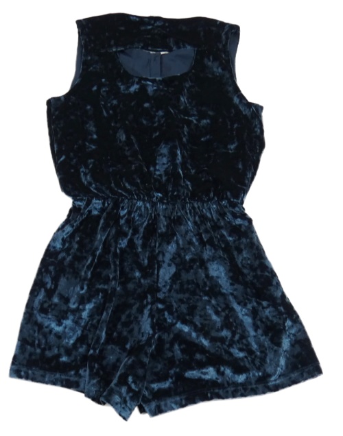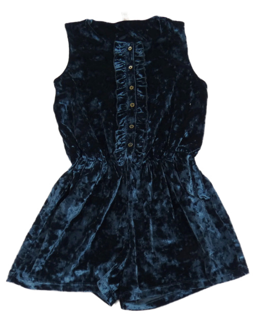 Petrolejový lesklý sametový kraťasový slavnostní overal s volánky Tu