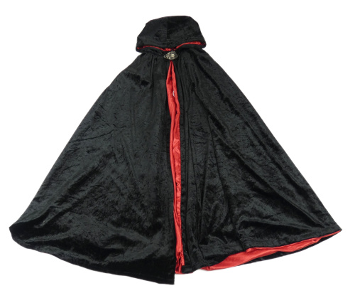 Kostým - Černo-červený sametovo/saténový plášť s kapucí