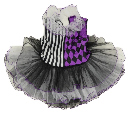 Kostým - Černo-bílo-fialové šaty se vzorem a tylovou sukní
