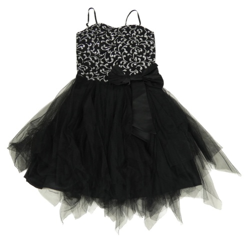 Černé tylové slavnostní šaty s mašlí a kamínky