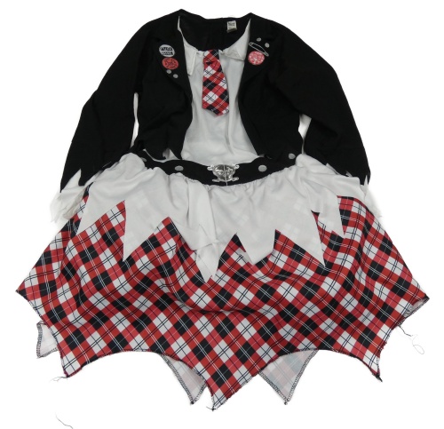 Kostým - Černo-červeno-bílé kárované halloweenské šaty s kravatou