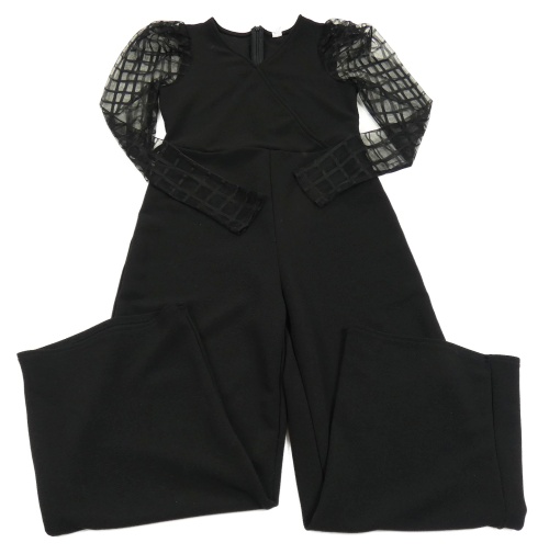 Černý společenský kalhotový overal s tylovými rukávy shein