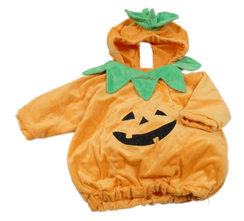 • Kostým - Oranžovo-zelený plyšový vycpaný oděv s kapucí - dýně
