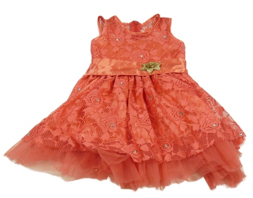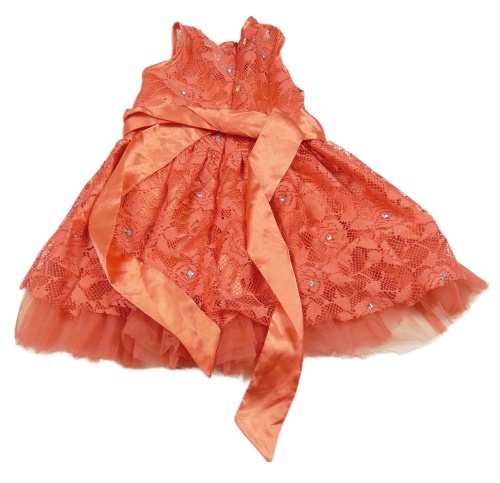 Korálové krajkové slavnostní šaty s páskem a kamínky