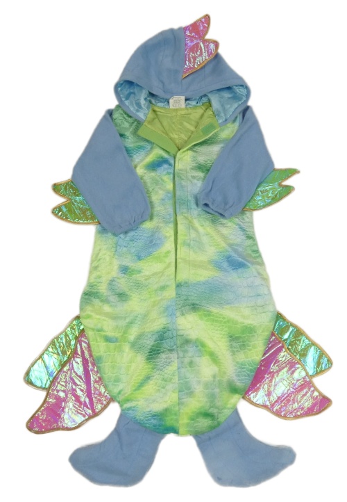 Kostým - modro-zelená plyšová kombinéza s kapucí