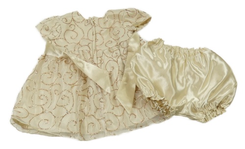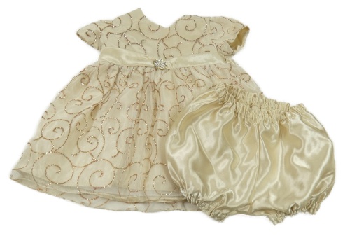 2set - Béžové třpytivé vzorované slavnostní šaty + saténové kalhotky na plenku