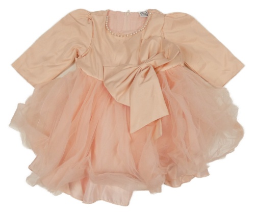 Broskvovo-světlerůžové saténovo/tylové slavnostní šaty s mašlí a perlami