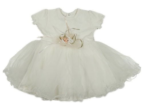 Bílé bavlněno/tylové slavnostní šaty s 3D květem s růžemi a pecičkami BULSEN